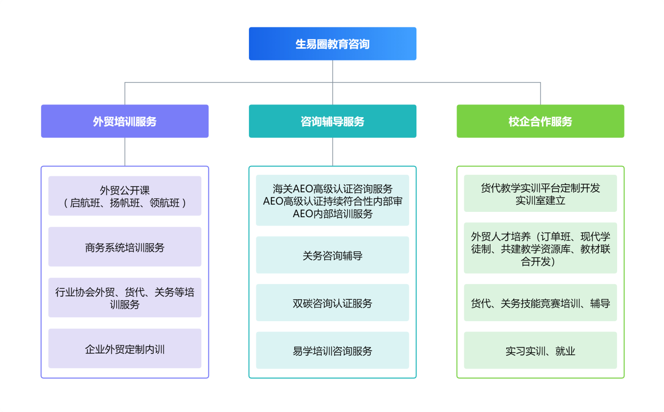 公司結(jié)合國(guó)際供應(yīng)鏈外貿(mào)綜合服務(wù)及人才優(yōu)勢(shì),立足外向型企業(yè)人才需求,成立湖南生易圈教育咨詢有限公司。